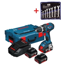 DenumireBosch GSR 18 V-LI + Set 8 chei fixe BGS - Pachet Masina de gaurit-insurubat cu 3 acumulatori + Set de chei fixe