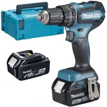Makita - DHP458RFJ - Masina de gaurit si insurubat cu percutie cu 2 acumulatori, Li-Ion, 18 V, 3 Ah, 91 Nm, led iluminare, valiza speciala