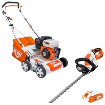 Ruris - RXH999 + 4024e - Scarificator cu motor pe benzina, 4 timpi, 5.3 CP, 40 cm + Masina de tuns gard viu cu 1 acumulator, Li-Ion, 20 V, 4 Ah, 45 cm