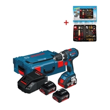 DenumireBosch GSR 18 V-LI + BGS Set 23 piese - Pachet Pachet Masina de gaurit-insurubat cu acumulator + Set universal 23 piese