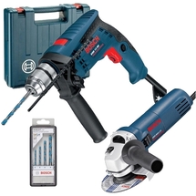 1 x Bosch - GSB 13 RE - Masina de gaurit cu percutie, 600 W, mandrina rapida, 13 mm, turatie reglabila, valiza plastic, accesorii