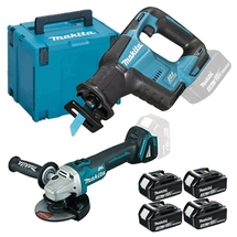 1 x Makita - DGA504Z - Polizor unghiular, 125 mm 4 x acumulatori, 18 V, 3 Ah 1 x incarcator rapid dublu DC18RD Valiza de transport tip Makpac