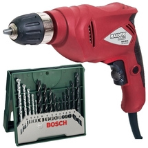 Set de livrare1 x Raider - RDP-ID35 - Masina de gaurit fara percutie, 400 W, mandrina rapida, 10 mm, turatie reglabila