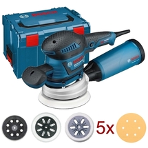 Set de livrare1 x Bosch - GEX 125-150 AVE - Slefuitor cu excentric, 400 W, 150 mm, sistem antivibratii, turatie reglabila, valiza speciala, accesorii
