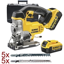Set de livrare1 x DeWalt - DCS331M2 - Fierastrau pendular cu 2 acumulatori, Li-Ion, 18 V, 4 Ah, functie suflare praf, prindere rapida accesorii, turatie reglabila, functie pendulare, valiza plastic