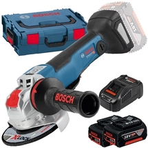 Cod articolPachet - Bosch - GWX 18V-10 PC X-LOCK - Polizor unghiular, 125 mm, motor fara perii, valiza speciala + 2 x Acumulator, Li-Ion, 18 V, 5 Ah + Incarcator