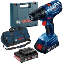 Cod articolPachet - Bosch - GSR 180-LI - Masina de gaurit si insurubat cu 2 acumulatori, Li-Ion, 18 V, 2 Ah, 54 Nm, valiza plastic + Geanta textila, 550x350x350 mm