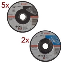 Cod articolPachet - Bosch - Pachet accesorii - 5 x Disc taiere, 125x22.2 mm + 2 x Disc polizare metal, 125x22.2 mm