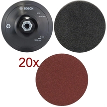 Cod articolPachet - Bosch - Pachet accesorii - 1 x Placa de slefuire rotunda cu scai, 125 mm + 1 x Burete de lustruit, 125 mm + 20 x Foi abrazive rotunde, 125 mm, fara gauri