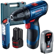 Cod articolPachet - Bosch + Skil - GSR 120 LI + 0551 AB - Masina de gaurit si insurubat cu 2 acumulatori, Li-Ion, 12 V, 2 Ah, 30 Nm + Detector de metale cu baterii alcaline, 30 mm