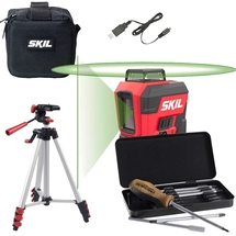 Set de livrare1 x Skil - 1961 DA - Nivela laser cu linii, 30 m, +/-0.5 mm/m, 2 linii laser, fascicul verde, proiectie 360 grade, trepied, geanta textila