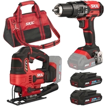 DenumireSkil - 3306 EA - Masina de gaurit si insurubat + Fierastrau pendular + 2 x Acumulatori, Li-Ion, 18 V, 2 Ah + Incarcator acumulatori Li-Ion, 20 V + Geanta textila