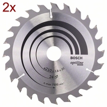 Cod articolPachet - 2x Bosch - Optiline Wood - Panza fierastrau circular, lemn, 210x30x2.8 mm, 24 dinti