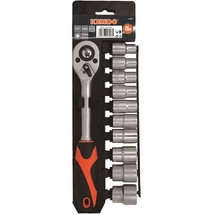 Topmaster - 330147 - Set capete chei tubulare, 4-17 mm, patrat 1/2 inch, 9 bucati