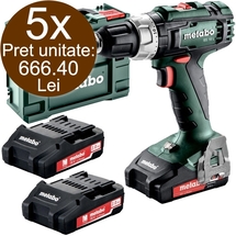 Cod articolPachet - 5x Metabo - BS 18 L SET - Masina de gaurit si insurubat cu 3 acumulatori, Li-Ion, 18 V, 2 Ah, 50 Nm, led iluminare, valiza speciala