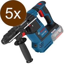 Cod articolPachet - 5x Bosch - GBH 18V-26 - Rotopercutor SDS-Plus fara acumulatori si incarcator, Li-Ion, 18 V, - Ah, 2.6 J, motor fara perii, sistem antivibratii, turatie constanta, led iluminare, turatie reglabila