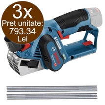 Cod articolPachet - 3x Bosch - GHO 12V-20 - Rindea fara acumulatori si incarcator, Li-Ion, 12 V, - Ah, 56 mm, accesorii