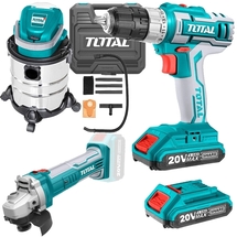 Cod articolPachet - Total - TDLI200215 + TVLI2005E + TAGLI1151 - Masina de gaurit si insurubat cu 2 acumulatori, Li-Ion, 20 V, 2 Ah, 45 Nm + Aspirator, 80 mbar + Polizor unghiular, 115 mm