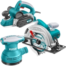 Cod articolPachet - Total - TS1141856 + TL1108236 + TF2041506 - Fierastrau circular, 1400 W, 185x16 mm + Rindea electrica, 1050 W, 82 mm, accesorii + Slefuitor cu excentric, 450 W, 150 mm