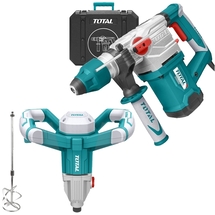 Cod articolPachet - Total - TH115326 + TD614006 - Rotopercutor SDS-Plus, 1500 W, 5.5 J, valiza plastic, accesorii + Masina de amestecat, 1400 W, 120 mm