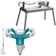 Cod articolPachet - Total - TS6082001 + TD614006 - Masina electrica de taiat ceramica, 800 W, 200 mm, taiere 45 grade + Masina de amestecat, 1400 W, 120 mm