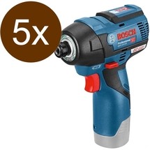 Cod articolPachet - 5x Bosch - GDR 12V-110 - Masina de insurubat cu impact fara acumulatori si incarcator, Li-Ion, 12 V, - Ah, 110 Nm, M4-M12, motor fara perii, turatie reglabila, led iluminare