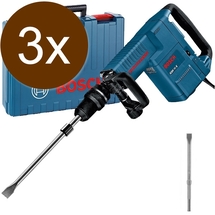 Cod articolPachet - 3x Bosch - GSH 11 E - Demolator SDS-Max, 1500 W, 16.8 J, turatie reglabila, led service, turatie constanta, valiza plastic, accesorii
