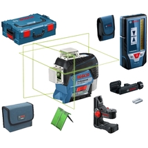 Set de livrare1 x Bosch - GLL 3-80 CG + BM 1 - Nivela laser cu linii, 30 m, +/-0.2 mm/m, 3 linii laser, fascicul verde, proiectie 360 grade, suport perete, valiza speciala
