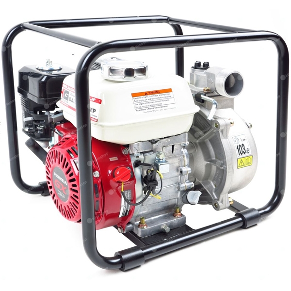 Motopompa de apa semi-murdara DaiShin SST-80 este echipata cu motorul in 4 timpi GP160 Honda de 5.5CP, avand diametrele de conectare pentru furtune de 3 toli, inaltimea maxima la care poate impinge coloana de apa este de 23 metri, la un debit de 800 litri pe minut.