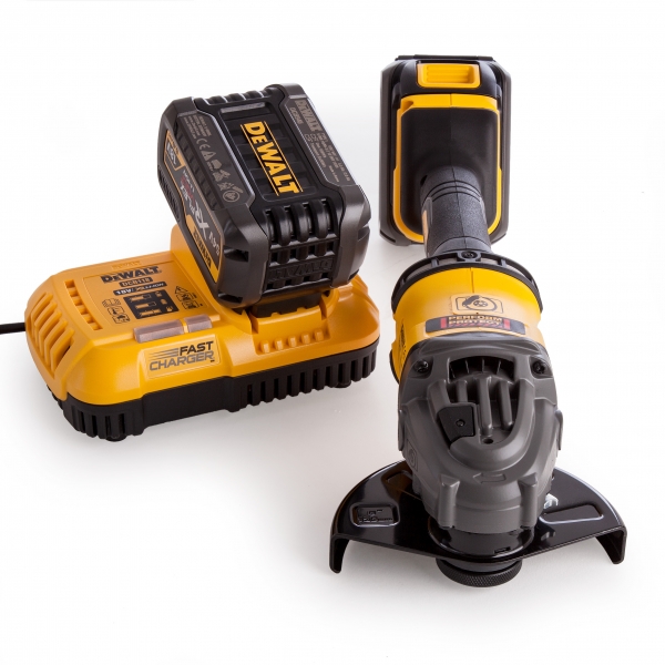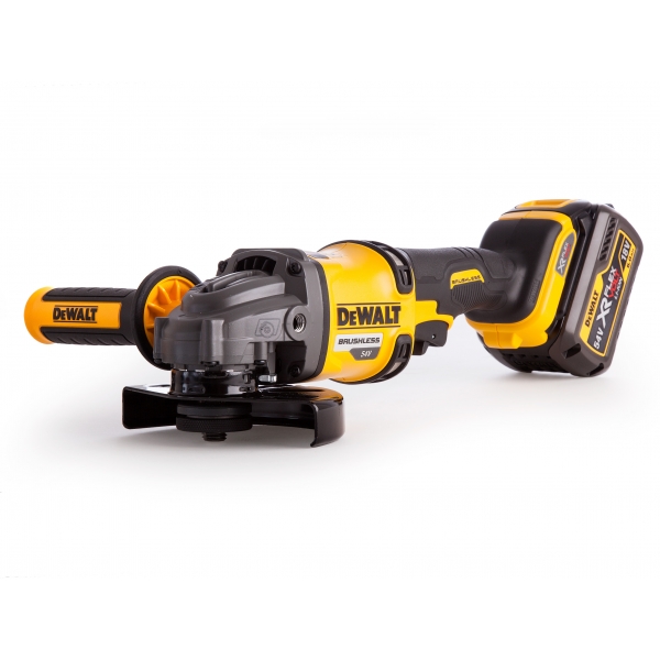Noul polizor unghiular 54 V DCG414T2 cu motor fara perii si acumulator XR FlexVolt este cel mai eficient din gama sa.