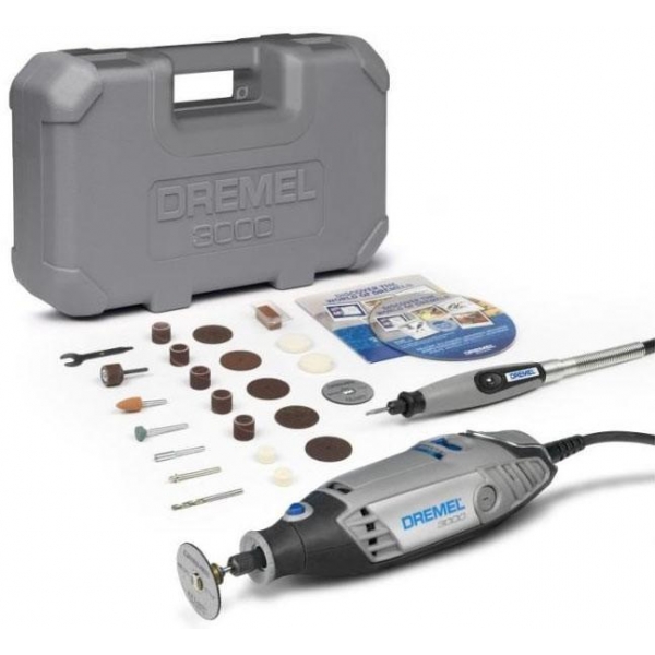 Aceasta trusa include unealta multifunctionala Dremel 3000, axul flexibil de inalta calitate Dremel si 25 de accesorii originale Dremel inclusiv EZ SpeedClic.