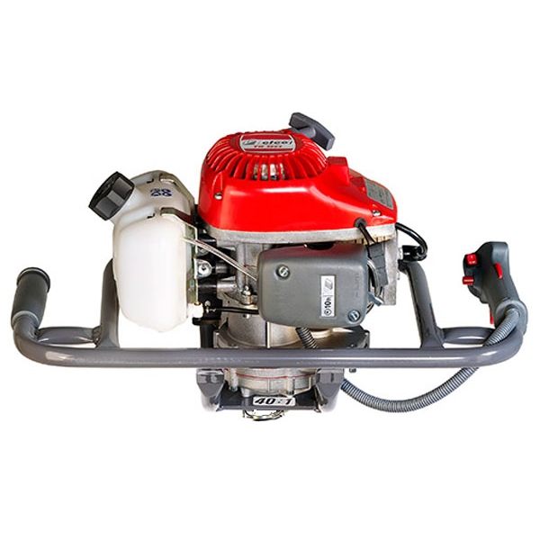 | Informatii suplimentare | Diametru foraj: 80-100-150-200 mm Putere motor: 1.6 kW Raportul reductorului: 40 : 1 Combustibil: Benzina cu amestec Aprindere electronica Carburator cu diafragma Ambreiaj centrifugal Pompa de amorsare Reductor cu ungere Diametru maxim burghiu: 200 mm |
