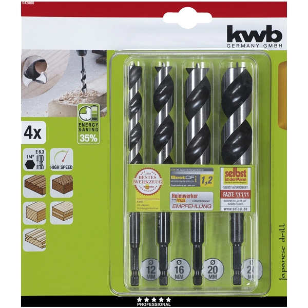 HiKOKI - 781983 - Set burghie lemn cu varf ascutit, 4-10 mm, tija hexagonala, 5 bucati