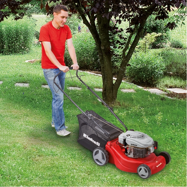 Masina de tuns iarba pe benzina Einhell GC-PM 40 S-P este recomandata pentru suprafete de pana la 1000 mp.