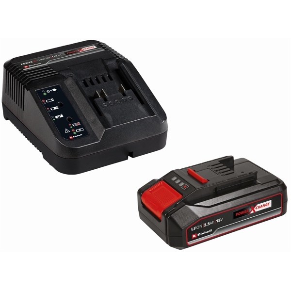Livrare cu baterie Power X-Change de 2,5 Ah si dispozitiv de incarcare.