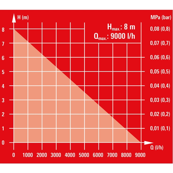 Cu o putere de 430 W, pompa are o adancime de imersie de pana la sapte metri si functioneaza pana la un nivel de adancime al apei de 1 mm.