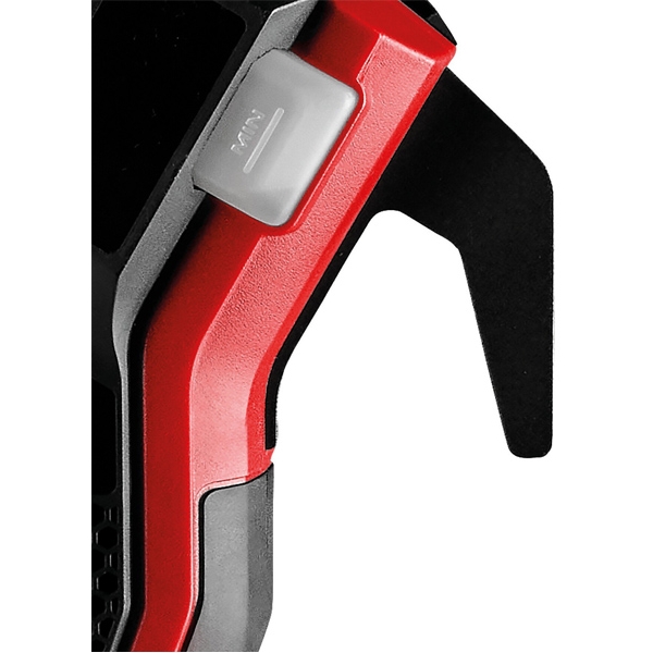 Pentru functionare este necesar un acumulator de 18 V, protejat impotriva socurilor de un cadru din otel situat la capatul tijei telescopice.
