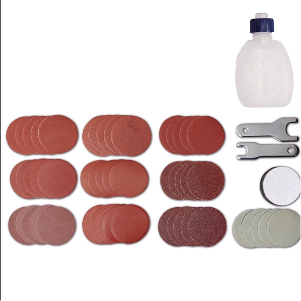 In plus, sunt furnizate un niplu de conectare si doua chei de strangere pentru montarea discurilor de smirghel pe discul de slefuit cu diametrul de 50 mm.