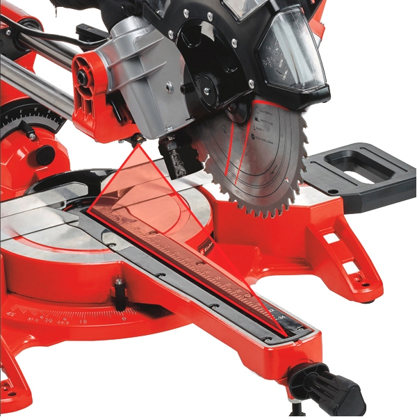 Un laser integrat, alimentat de la retea, marcheaza linia de taiere, permitand pozitionarea rapida si exacta a piesei de prelucrat.