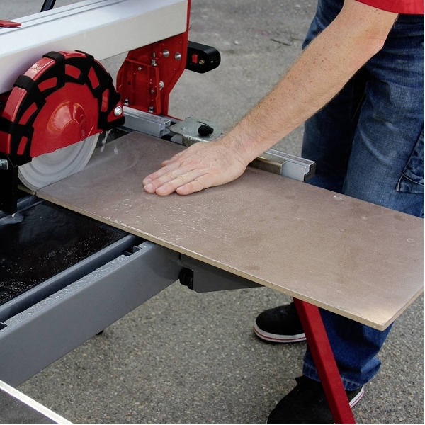Cu discul de taiere potrivit pentru materialul in cauza, acest taietor de placi ceramice va taia placile de perete, placile de pardoseala si chiar gresia portelanata fara efort, exact si fara praf.