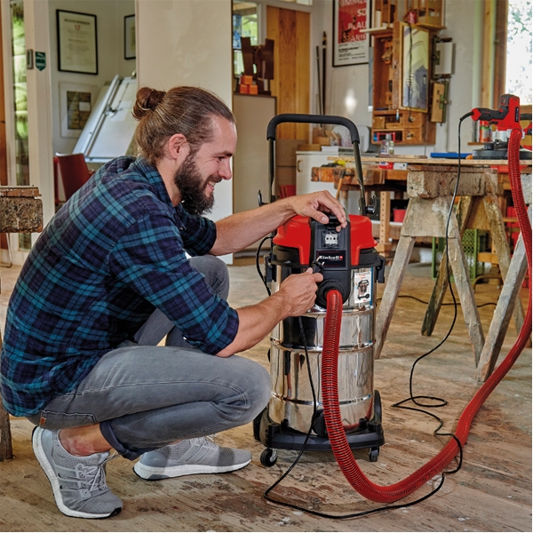 Aspiratorul umed-uscat Einhell TE-VC 2340 SAC are sistem de curatare a filtrului pentru praf fin.