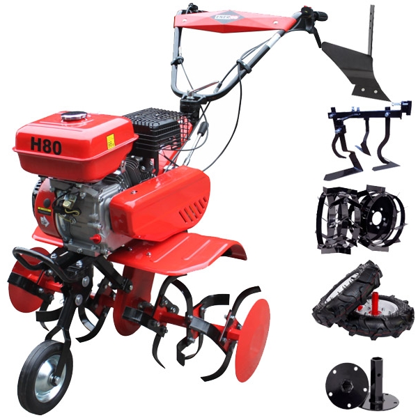 Motosapa H80 este compatibila cu urmatoarele accesorii: plug simplu,plug reversibil mic, dispozitiv de bilonat, prasitoare cu 3 cutite, rarita, dispozitiv de scos cartofi si remorca (ce suporta o sarcina maxima de 500 kg).