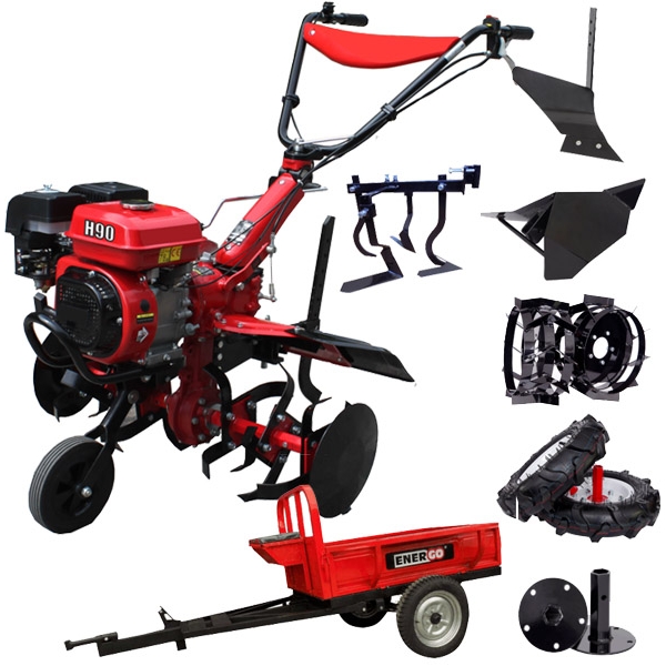 Motocultorul Energo H90 este echipat cu motor in 4 timpi, pe benzina ce dezvolta 7 CP si are un consum mediu de 1.3 litri/ora.