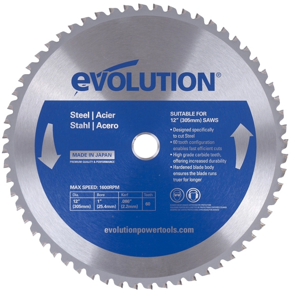 Disc pentru fierastrau circular, taiere otel Evolution EVO60TBLADE12-0491, 305x25.4 mm, 60 dinti