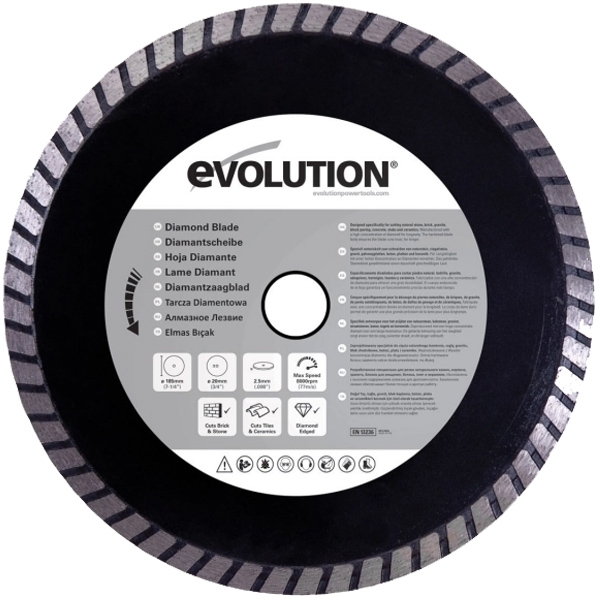 Disc diamantat pentru fierastrau circular Evolution EVORAGEBLADE185DIAMOND-1589, 185x20 mm