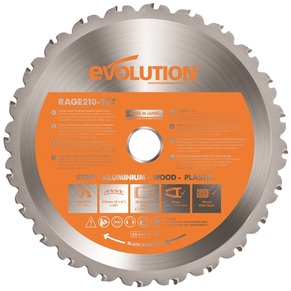Disc pentru fierastrau circular, taiere multifunctionala Evolution EVORAGEBLADE210MULTI-1083, 210 x 25.4 mm, 24 dinti.