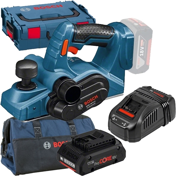 Pachet Bosch - GHO 18V-LI - Rindea, 18 V, - Ah, 82 mm, valiza speciala + Acumulator ProCORE, Li-Ion, 18 V, 4 Ah + Incarcator, incarcare rapida + Geanta textila