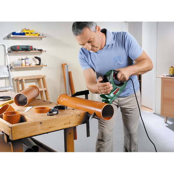 - Motorul puternic de 500 de W si lungimea cursei de 23 de mm asigura un avans rapid de taiere in lemn, material palstic si metal.