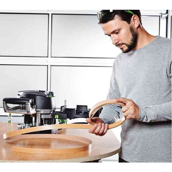 Frezare: frezare coplanara si rotunjirea partilor iesite in afara ale muchiilor: freza pentru canturi MFK 700 EQ/B-Plus cu frana cu rulment pentru rezultate fara dungi. Asigura rezultate de lucru perfecte gratie reglajului fin exact.