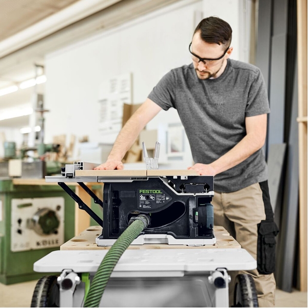 Fierastraul circular cu masa, cu acumulator CSC SYS 50 este atat de compact, incat se potriveste intr-un Systainer. Acesta nu doar are o forma extrem de manevrabila, ci este si uimitor de versatil in utilizare: cu taieri paralele de pana la 280 mm, o latime de retezare de pana la 450 mm si taieri in unghi de la -2 pana la 47 grade. Sistemul digital inedit de operare asigura obtinerea unor rezultate extrem de precise de pana la o zecime de milimetru. Sistemul de acumulatori dubli de 2x18 V, in combinatie cu motorul EC-TEC fara perii, se evidentiaza datorita puterii si fortei de actionare - nu veti observa nicio diferenta fata de lucrul cu masinile cu racordare la priza. Impreuna cu masa de lucru cu pneuri din cauciuc UG-CSC-SYS aveti masa de lucru perfecta, iar transportul autovehiculului la locul de utilizare se realizeaza astfel fara efort.